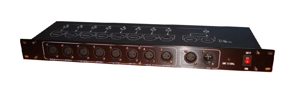 8路獨(dú)立放大驅(qū)動(dòng)輸出。信號(hào)放大整形功能,延長(zhǎng)信號(hào)傳輸距離。增強(qiáng)數(shù)據(jù)總線(xiàn)接入設(shè)備數(shù)量的能力。保護(hù)燈光控制臺(tái)